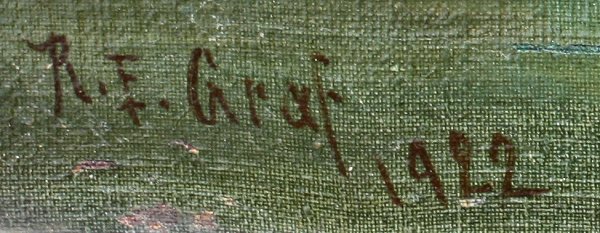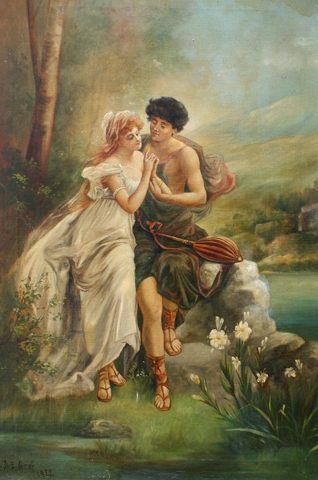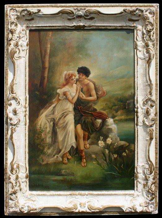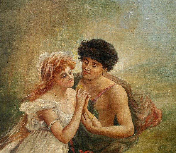 GRAF, Richard, (American, 19th/20th C): 19th C. Romantic Scene with Young Lovers, OIL/Canvas, 30'' x 20'', signed and dated 1922, worn overpainted frame, 38 1/2'' x 28 1/2''. Est. $600/800**