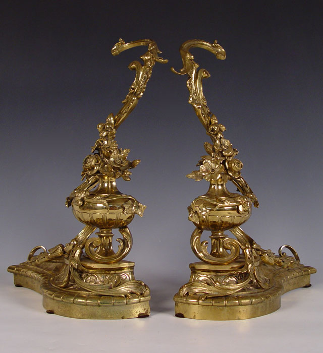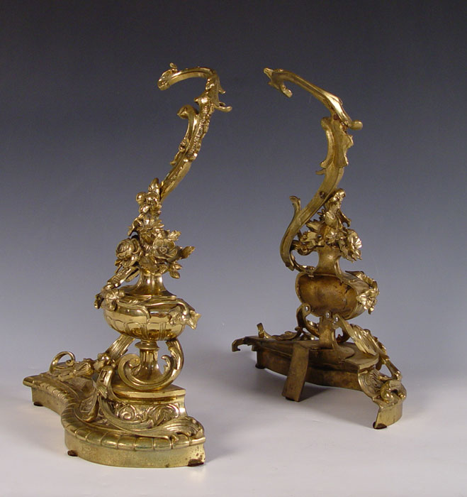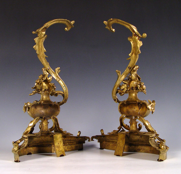 FRENCH BRONZE DORE CHENET FIREPLACE ANDIRONS: 19'' h. x 14'' x 5 1/2''