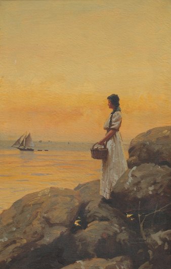 GAUL, Gilbert, (American, 1855-1919): ''Waiting For Her Ship'', OIL/Canvas, 23'' x 15'', signed, period gilded frame with wear, 26'' x 19''