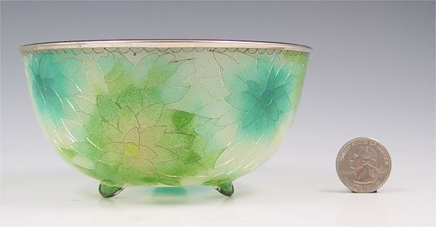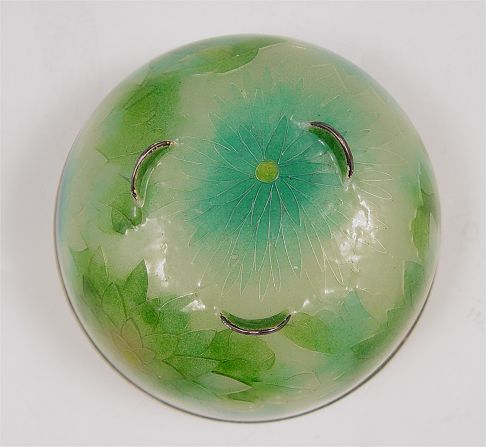 PLIQUE A JOUR BOWL: Restful shades of green, 4 3/4'' dia., 2 1/2'' tall.