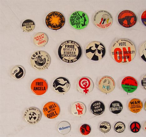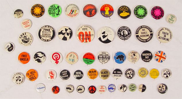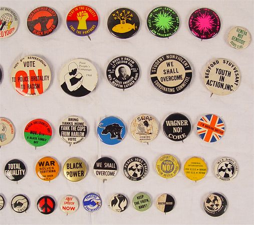 VINTAGE BLACK PANTHER & 1960'S PINBACK COLLECTION: Approx. 52 pieces unique collection of 1960's activist pinback buttons including Black Panther, Dubois Club, United Youth, Poor peoples Campaign, and other racial equality groups.