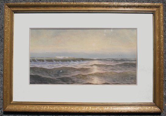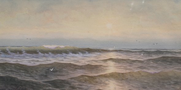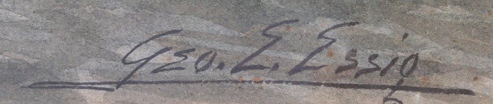ESSIG, George, (American, 1838-1926): Shoreline with Boats in the Distance, Watercolor, sight size 12'' x 24'', signed, gilded frame with scrolling foliate motif, minor wear, 24'' x 36 1/2''.