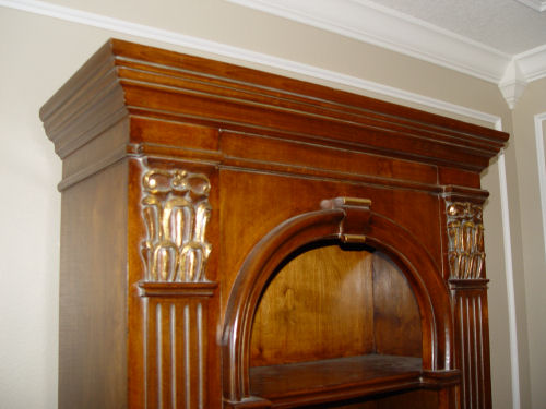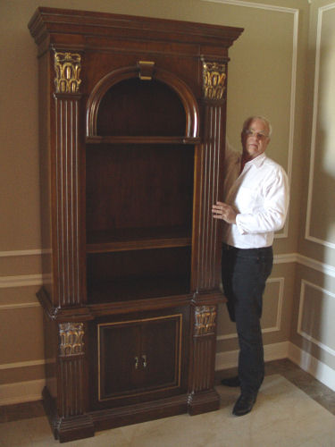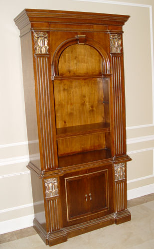 CONTEMPORARY BOOKCASE DISPLAY CABINET: Arched center, columnar stiles. 90'' x 44'' x 19''