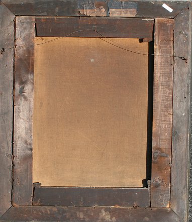 CONDITION: Needs cleaning, possibly has been relined, cracklure on right margin.