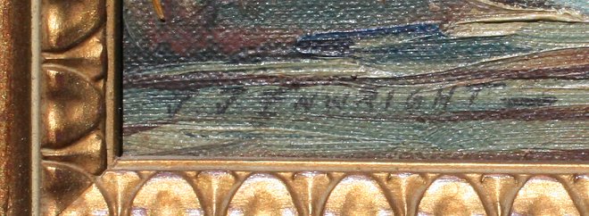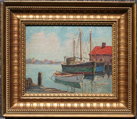 ENWRIGHT, J. J., (American, 1911-2001): Gloucester harbor scene, OIL/Canvas Board, 8'' x 10'', signed lower left, period gilded carved frame with minor wear, 12 1/2'' x 14 1/2''.