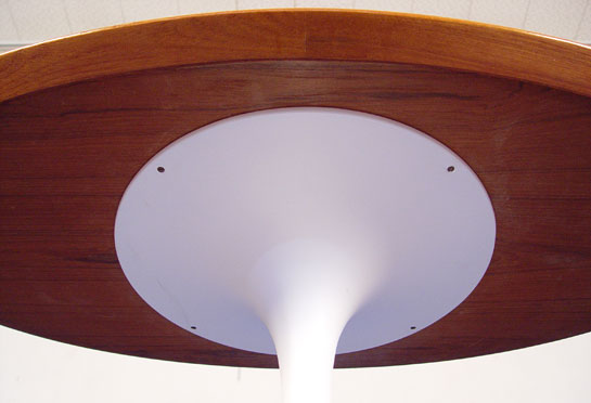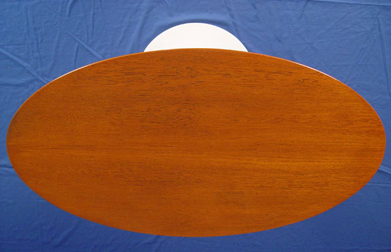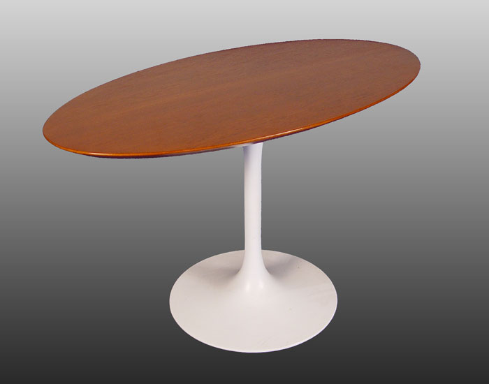 EERO SAARINEN TULIP SIDE TABLE: Unsigned, the oval top in refinished condition. Measures 29 1/2'' high x 47 1/2'' x 25 3/4''