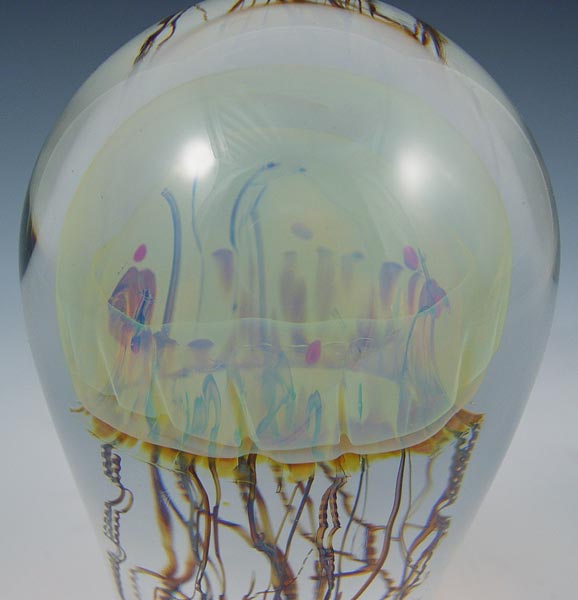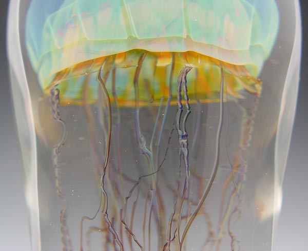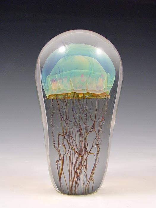 SATAVA, Richard, (American, 20 th C.): Real life detail art glass Jellyfish Sculpture. Signed Satava and numbered 3730-99. 6'' tall.