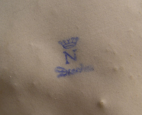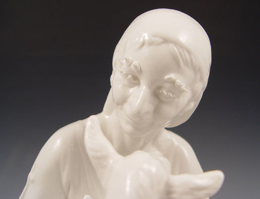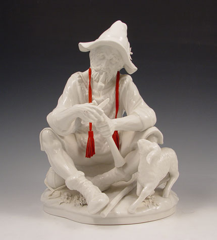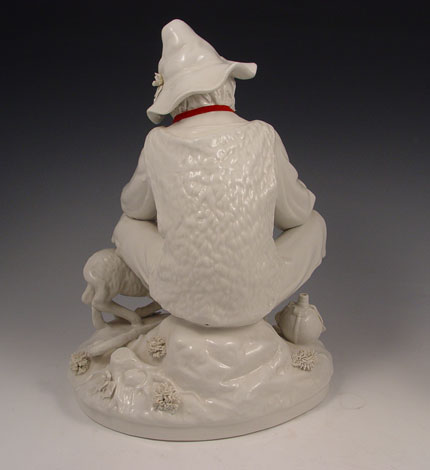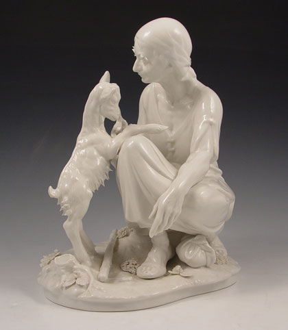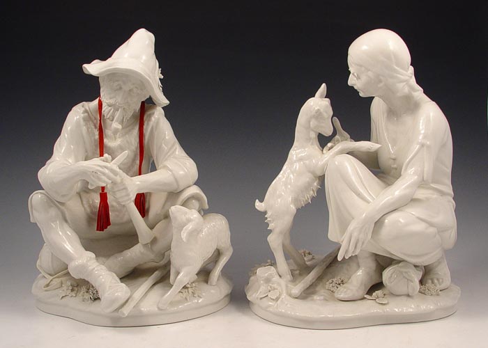 LARGE PAIR DRESDEN PORCELAIN FIGURES: Elder man and woman with farm animals, 10 1/4'' h. Blanc de Chine glaze. Crown D mark.
