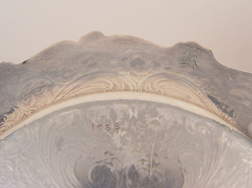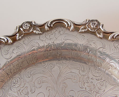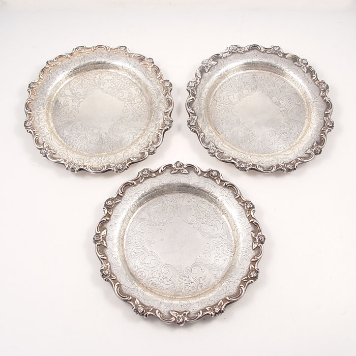 3 ENGRAVED STERLING PLATES: Engraved floral design with embossed floral rim. Simply marked Sterling 175S. Measures 7 1/4'' dia. Approx 21.8 troy oz.