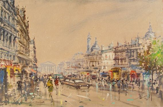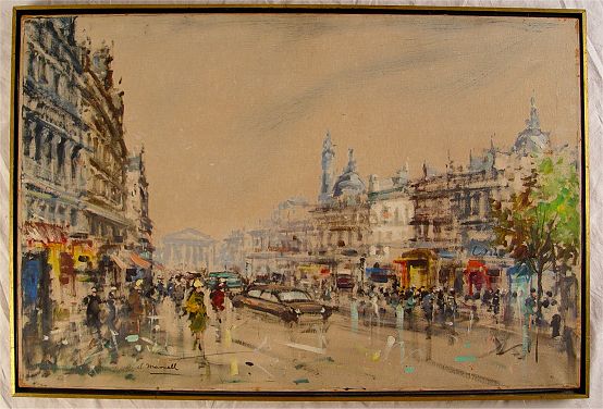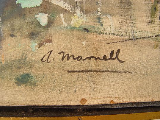 PARISIAN STREET SCENE PAINTING SIGNED A. MARNELL: OIL/C, 23 3/4'' x 35 1/2'', framed 25'' x 37 1/4''.