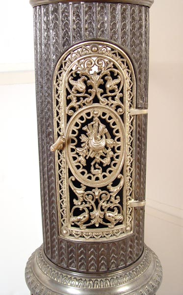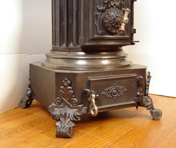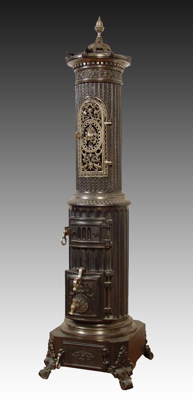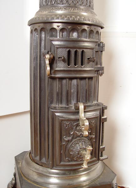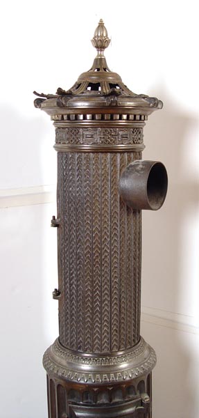 FRENCH CAST IRON PARLOR STOVE / HEATER: Heavy cast iron, separates in to sections for shipping. Measures 62'' high x 17'' x 17''.