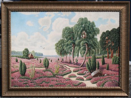 EARLY 20TH CENTURY GERMAN SCHOOL PAINTING: Lavender FieldS, Oil/Canvas, 28'' x 40'', no visible signature, carved frame with minor wear, 35'' x 47''.