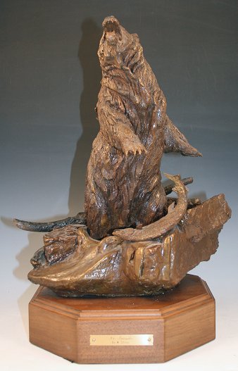 SHOOP, Wally, (American, 20th C.): ''No Intruder'', Bronze, 16''h., 18'' with affixed wooden plinth, incised signature, dated '83, marked 2/50/B.