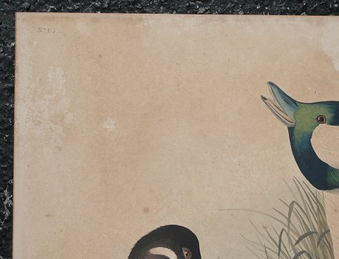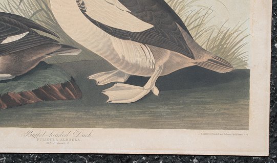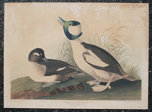 J.J. AUDUBON BUFFLE-HEADED DUCK HAVELL ENGRAVING w/ETCHING & AQUATINT: Full size with margins is 15 1/4'' x 21'', framed, 17'' x 22''. Please read condition report.