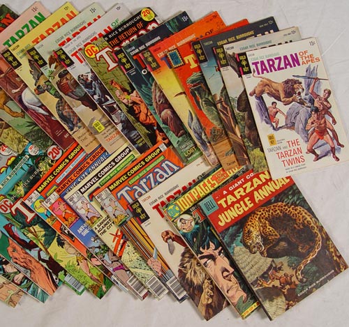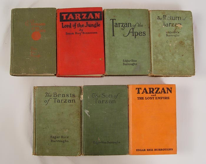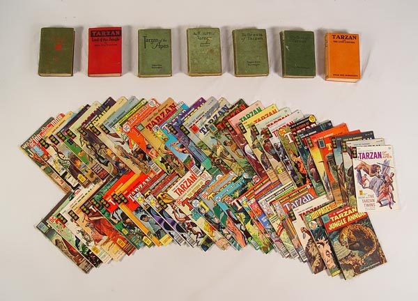 COLLECTION OF TARZAN BOOKS & COMICS: 6 books by Edgar Rice Burroughs to include 1) Tarzan of the Apes, 1914, A. L. Burt Company. 2) The Return of Tarzan, 1915, A. L. Burt Company. 3) The Beasts of Tarzan, 1916, A.L. Burt Company. 4) The Son of Tarzan, 1917 A. L. Burt Company. 5) Tarzan and the Lost Empire, 1929, Metropolitan. 6) The Princess of Mars, 1917, Grossett & Dunlap. Also included is Tarzan, Lord of the Jungle, second printing, 1928, Grossett & Dunlap. Collection is completed with 52 Tarzan comics from Dell, Gold Key, DC and Marvel.