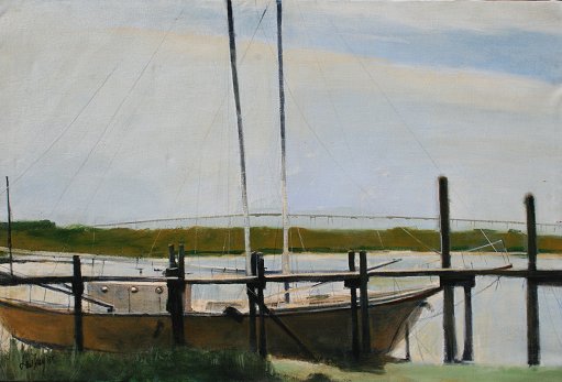 SAILBOAT PAINTING SIGNED LANKEY: OIL/Canvas, 32'' x 48'', signed and dated 85.