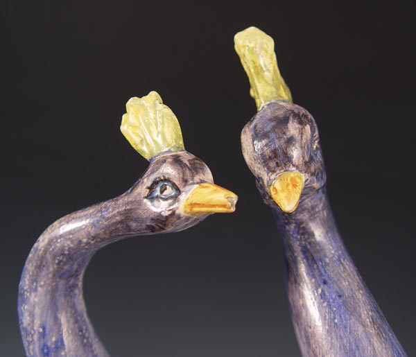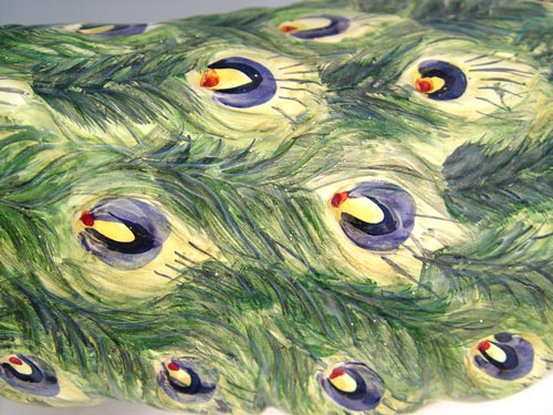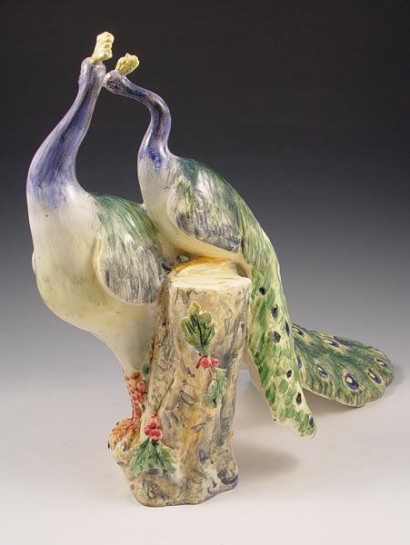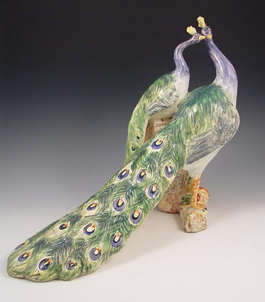 ITALIAN MAJOLICA PEACOCK FIGURINE: Measures 14'' high x 17 1/2'' x 8 1/2''
