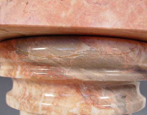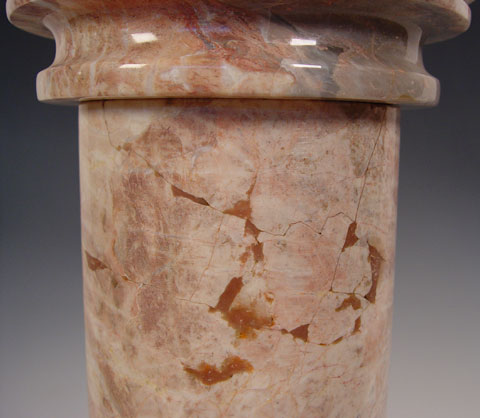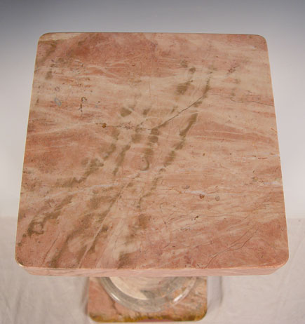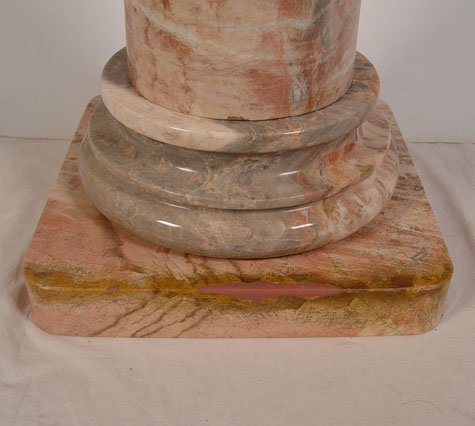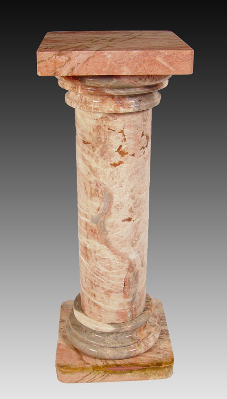 PINK MARBLE PEDESTAL: 5 part pedestal, measures 37 1/2'' high x 14'' square.