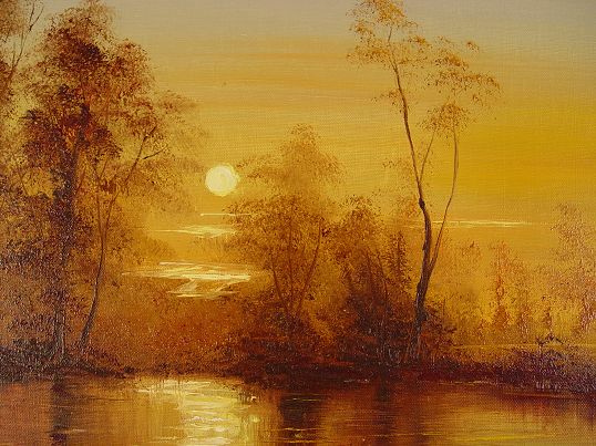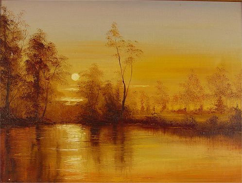 VINCENT, Charles, (): Golden glow of a woodland lake at sunset, OIL/C, signed lower left, 18 1/4'' x 24'', framed 20 3/4'' x 26 3/4''.