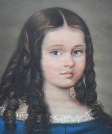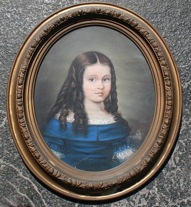 19TH C PASTEL PORTRAIT OF A YOUNG GIRL: Oval size 21'' x 17'', no visible signature, encased in period over painted carved and gesso frame, 29'' x 25''.