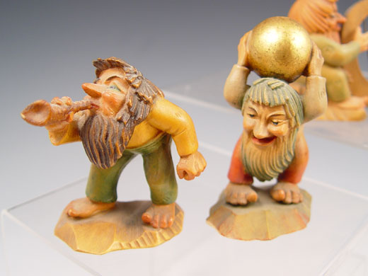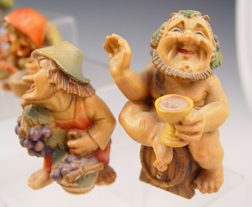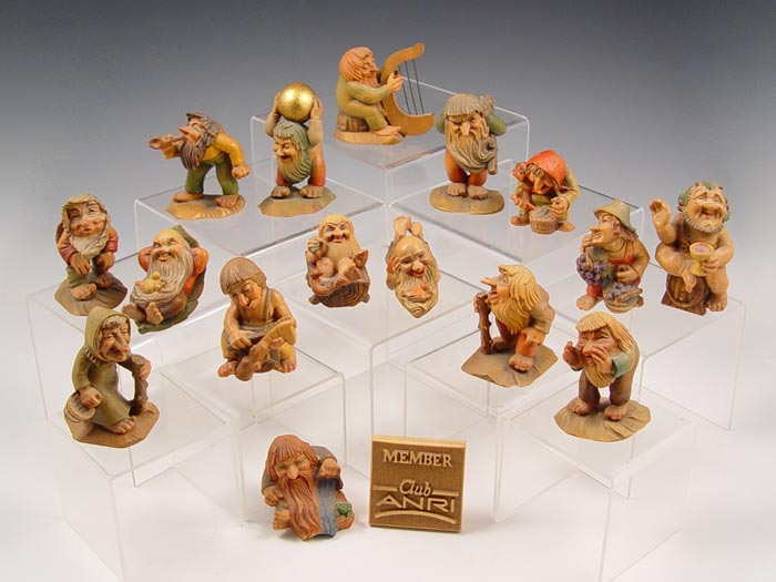 COLLECTION OF 16 CARVED ANRI FIGURES: 3'', approx. Each a different man in play, contemplation, or work. Sold with the Anri Collector Club easel back plaque.