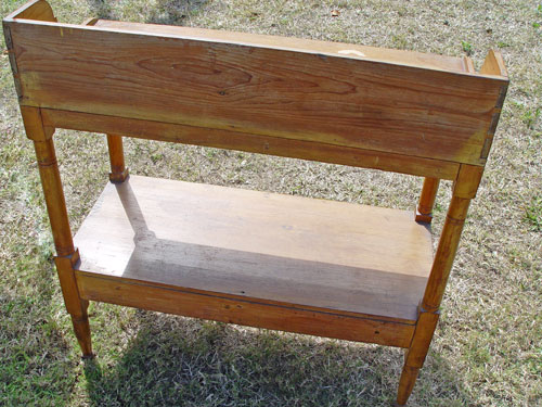 EARLY 19TH C SOUTHERN COUNTRY SHERATON STYLE WASHSTAND: Lower stretcher shelf with half length drawers. Measures 34 1/2'' high x 31'' x 14''