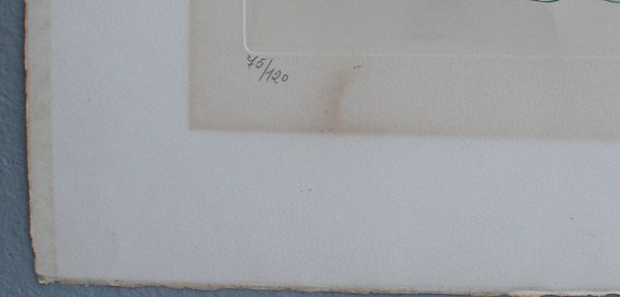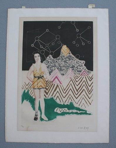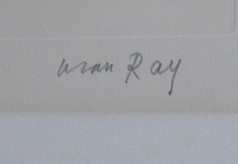 MAN RAY, (American, 1890-1976): ''Homage to Linus Pauling'', Etching and Aquatint in colors, full size with margins 26'' x 19 3/4'', pencil signed lower right, #'d 75/120 lower left.