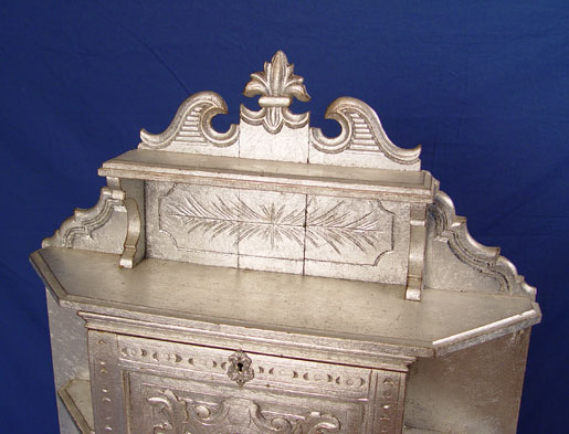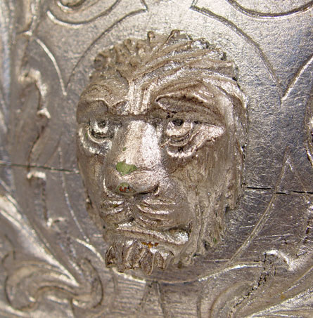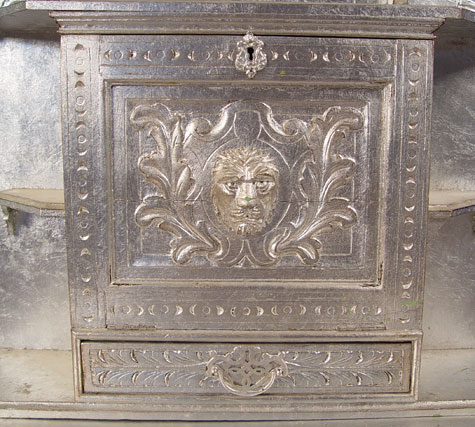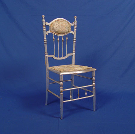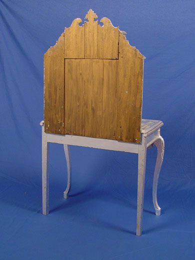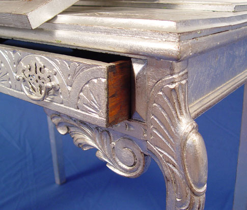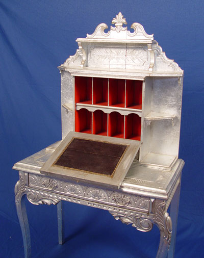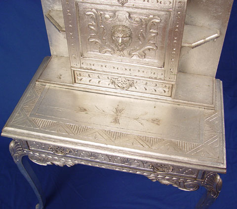 ENGLISH VICTORIAN SILVER GILT DESK WITH CHAIR: Desk measures approx. 57 1/2'' high x 30'' x 16 3/4''. Chair measures 35 1/4'' high x 15'' x 14''.