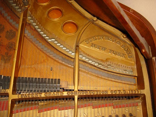STEINWAY & SONS MAHOGANY CASE BABY GRAND PIANO CA. 1912: Serial number 156115. Please expect to do some restoration and tuning, action will need repair. Approx. 39''h. x 56'' x 66''. Sold with piano bench.