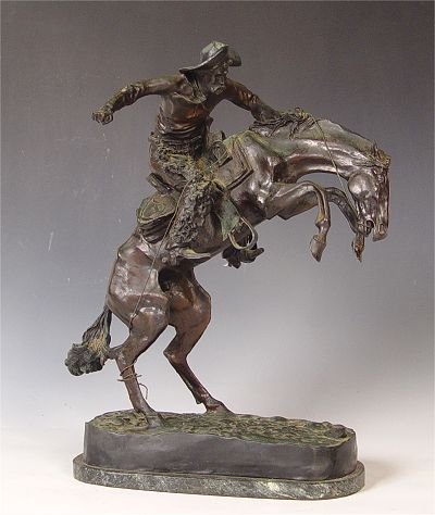 REMINGTON BRONZE RECAST ''BRONCO BUSTER'': 21 1/2'' x 8'' x 18''