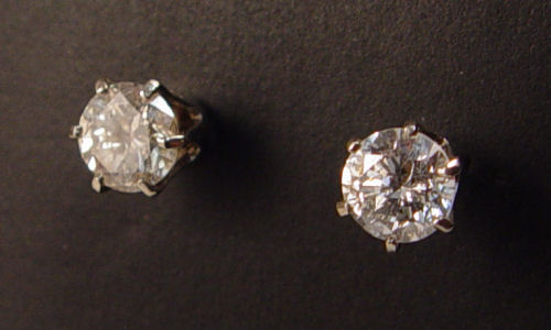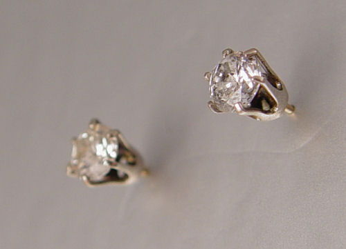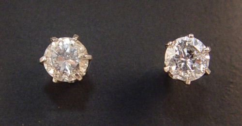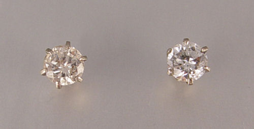 1.2 CTW DIAMOND SOLITAIRE STUD EARRINGS: 14K white gold earrings. Two round brilliant cut diamonds. Approx. total weight 1.2 Ct., rated I1 in clarity and J-K in color. The diamonds are prong set.