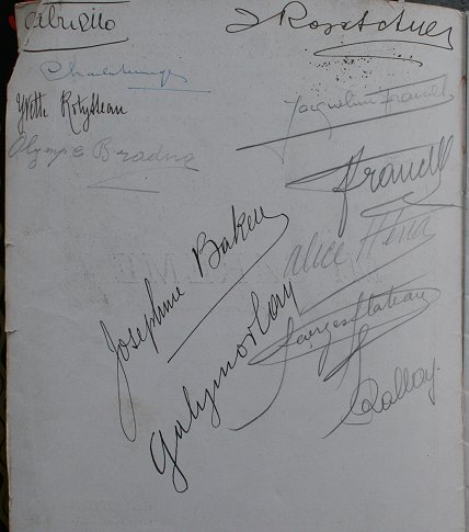 ORIGINAL PROGRAM FROM MI-CAREME 1931: With autographs on the inside front cover from most of the cast, most notably Josephine Baker. Sold with paperback Josephine Baker biography by Patrick O'Connor. Program cover in fair condition, book intact with loose spine. Overall size for shipping approx. 10 3/4'' x 8 1/2'' x 1 1/8''. Sold as a lot.