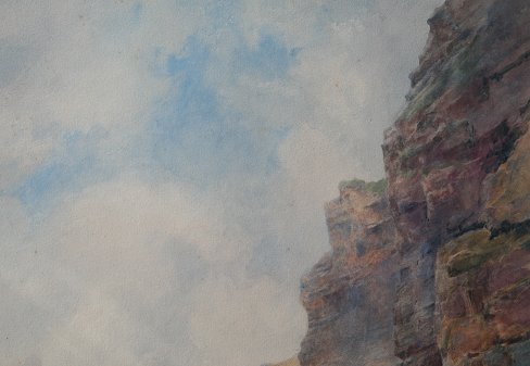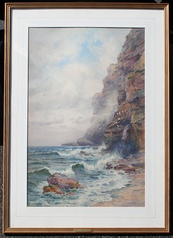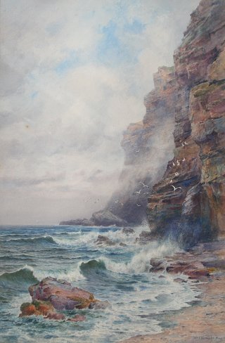 RICHARDS, William Trost (American, 1833-1905): Cornish Coastal Cliffs, Watercolor/Gouache on Board, 29'' x 19'', signed and dated May 1900, contemporary gold framing, 37'' x 27''.