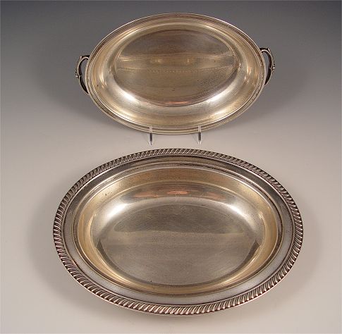 FISHER STERLING COVERED VEGETABLE SERVER: In the Kent pattern. Measures 3 1/2'' high x 11 1/8'' x 8 3/4''. Approx 29.3 troy oz.
