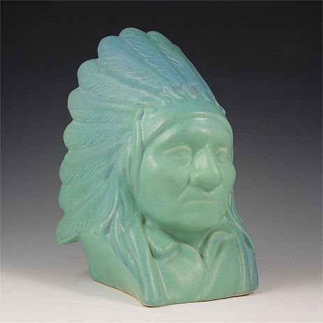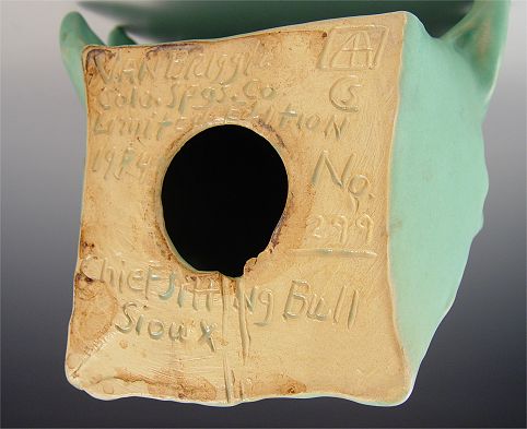 VAN BRIGGLE POTTERY SITTING BULL BUST: Part of the ''Great American Series'', this is Sitting Bull figure no. 299. Designed by Craig Alan Stevenson in the Van Briggle Studios. Sold with the certificate. Limited edition. i11 1/2'' tall.