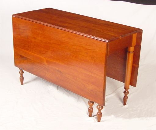 19th C SWING LEG CHERRY DROP LEAF TABLE: Six turned legs, 22'' drop leaves. 31'' tall x 64'' x 48'' with leave extended.