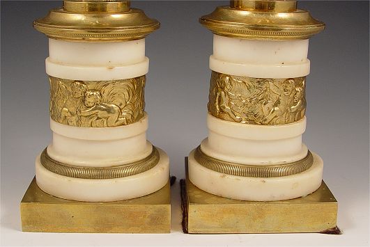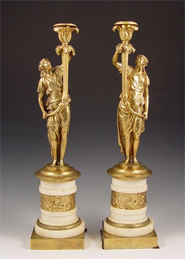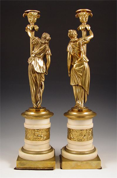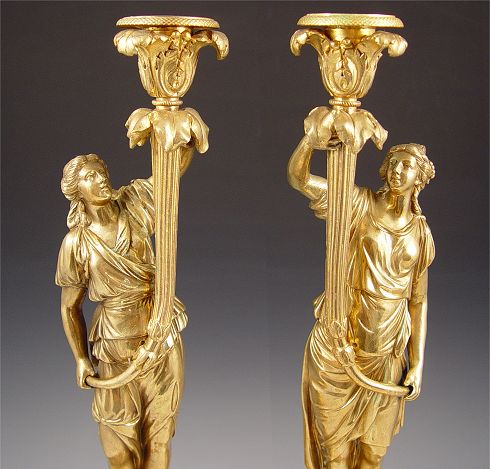 PAIR REGENCY PERIOD GILT BRONZE FIGURAL CANDLE STANDS: 18''