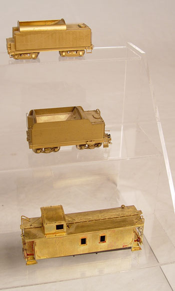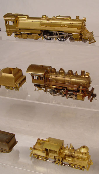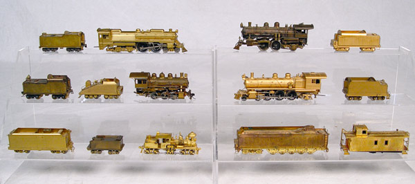 COLLECTION OF ASSORTED BRASS HO TRAINS: To include 1) Samhongsa CPR 4-6-2, no tender. 2) Custom Baltimore & Ohio 4-4-4 with tender. Original box. 3) Custom Great Northern 4-4-2 with tender and accessories, note missing front 4 wheels. Original box. 4) United Union Pacific 0-6-0 with tender. Original box. 5) Unknown small 4-0-4, no box. 6) Diayoung Great Northern E-8 tender in original box. 7) Pacific Fast Mail Union Pacific Centennial Tender in original box. 8) 2 addition unknown tenders and caboose.