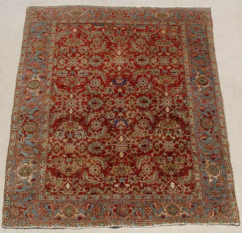 SEMI ANTIQUE HAND KNOTTED HERIZ CARPET: Approx. 6' 1'' x 4' 11''