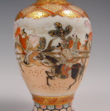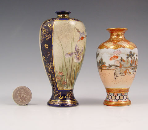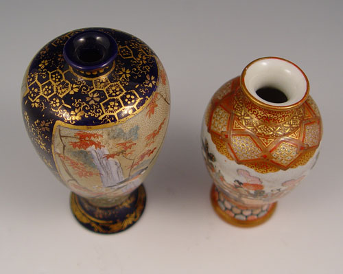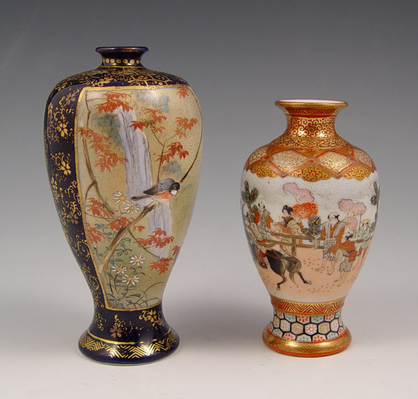TWO JAPANESE SATSUMA VASES: Measures 4 1/2'' h. and 3 3/4''.
