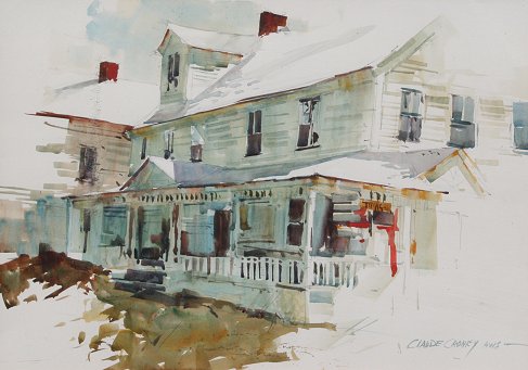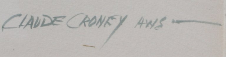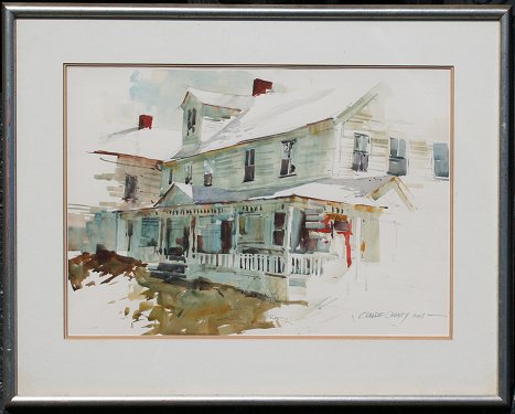 CRONEY, Claude, (American, 1926-): Street Scene with White House, W/C, sight size 14 1/2'' x 19 3/4'', signed lower left Claude Croney AWS, encased in silver gilt frame, 21'' x 26''.