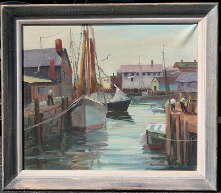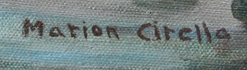 CIRELLA, Marion, (American, 2oth C.): Gloucester Harbor Scene, OIL/Canvas, 23'' x 27'', signed lower right, encased in painted worn wood frame, 29'' x 33''.