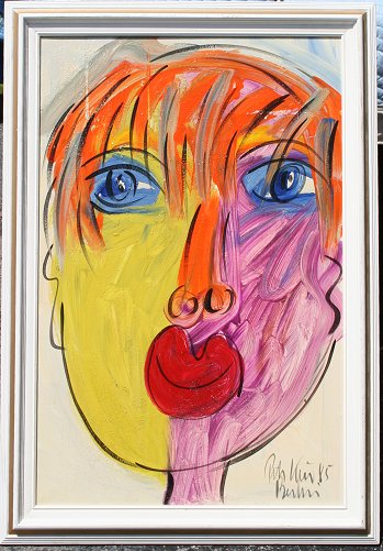 KEIL, Peter, (German, 1942-): ''My Friend Andy Warhol'', Acrylic/Canvas, 36'' x 24'', signed, dated 85, signed and titled verso, encased in white frame with wear, 41'' x 29''.