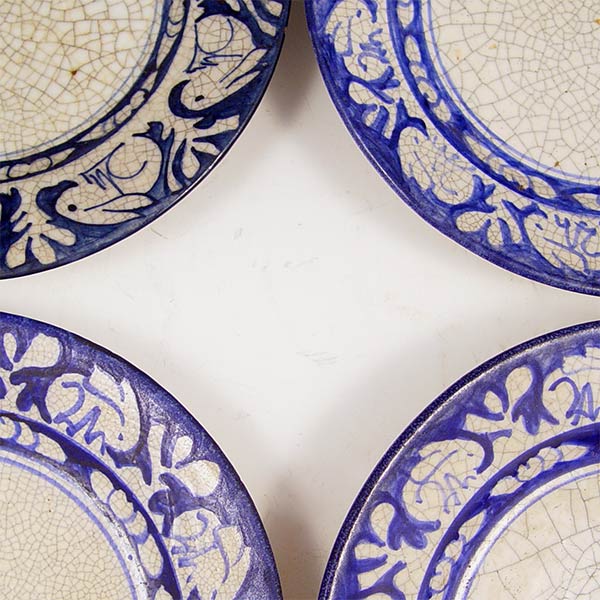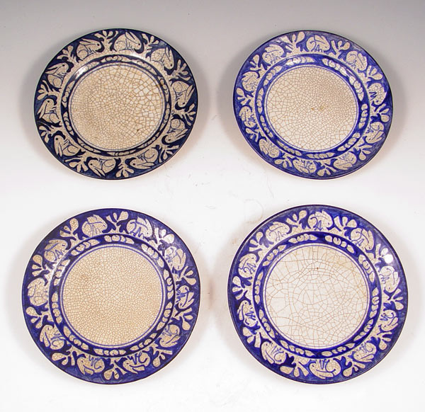 4 DEDHAM POTTERY PLATES: Rabbit border. 6'' dia. Each is hallmarked.