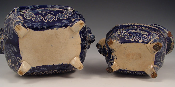 CONDITION: Overall discoloration and general age related hairlines. The cream pitcher has a repaired chip on spout.