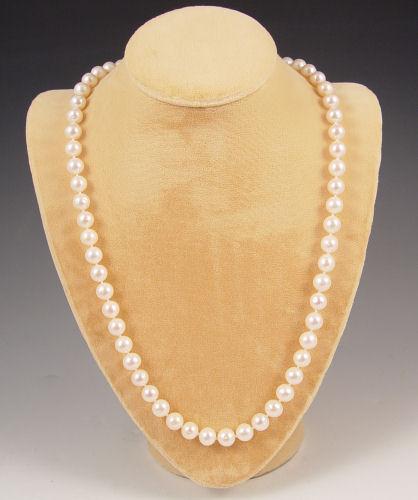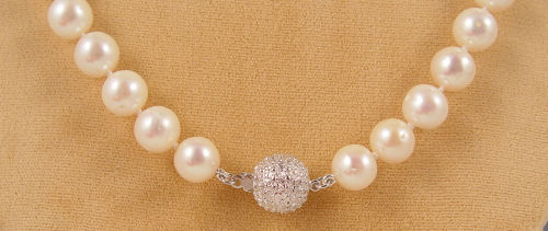 25'' STRAND OF 10.00 MM CULTURED PEARLS: One 25'' strand of 10.00 mm freshwater cultured pearls. High luster, blemished, white with rose overtone. Sterling silver ball clasp.