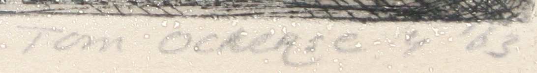 OCKERSE, Tom, (American, 20th c): ''Bus Station'', Etching, sight size 10 1/2'' x 7 3/4'', pencil signed and dated lower right 4/63, numbered 2/15, encased in black frame, 11'' x 14 3/4''.