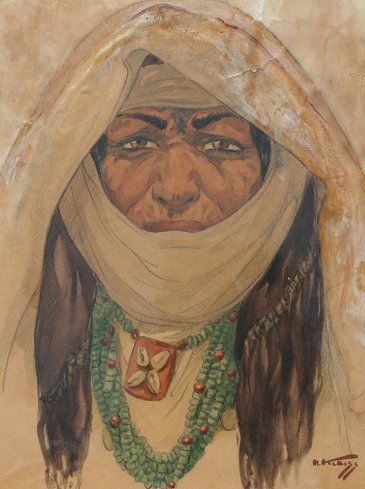 KLEISS, Hans, (European, 20th C.): Portrait of a Moroccan Maiden in Veil, Watercolor, Pencil & Gouache, 11 1/2'' x 8 3/4'' sight size, signed, worn frame, 17'' x 13''.