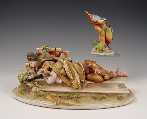ANTONIO BORSATO PORCELAIN FIGURES: 1) Solid Comfort, 10'' long, 4''h. 2) Beetle Bug bird figure, 4 1/4''h.