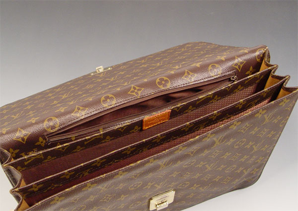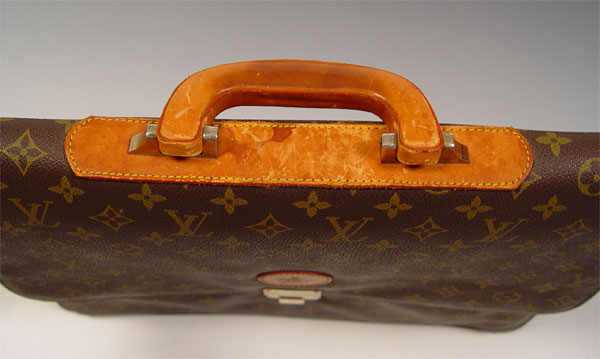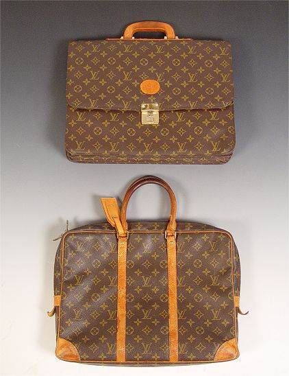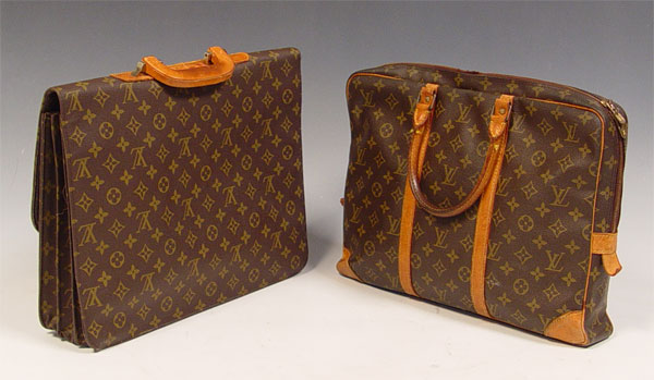 LOUIS VUITTON HANDBAG & BRIEFCASE: Includes 1) Soft briefcase with 3 compartments and single handle. Measures 13 1/4'' x 16''. 2) Handbag with 4 interior pockets and zippered interior pocket. 2 handles. Measures 13 1/2'' x 17''. 3) Passport case and card case.